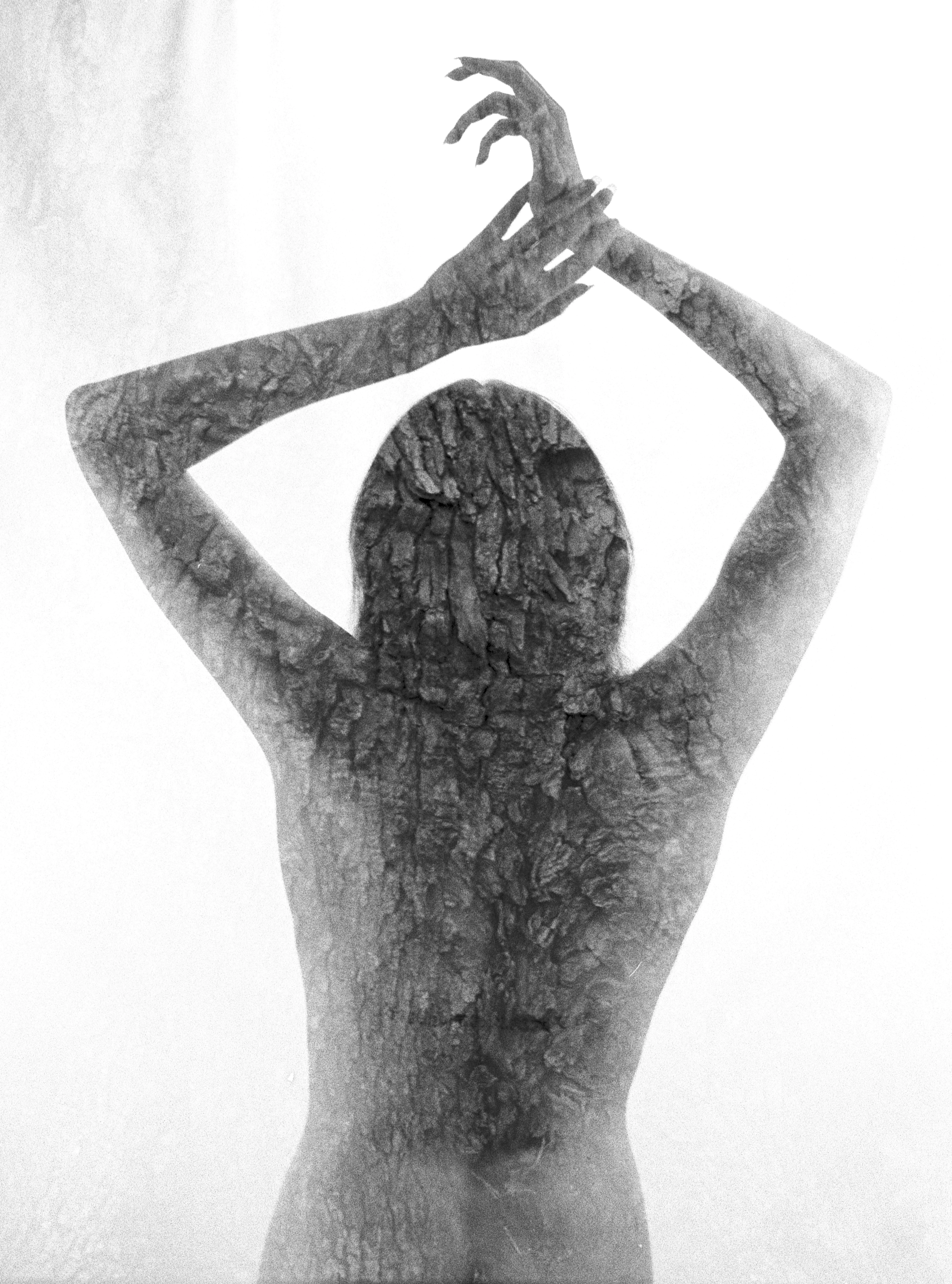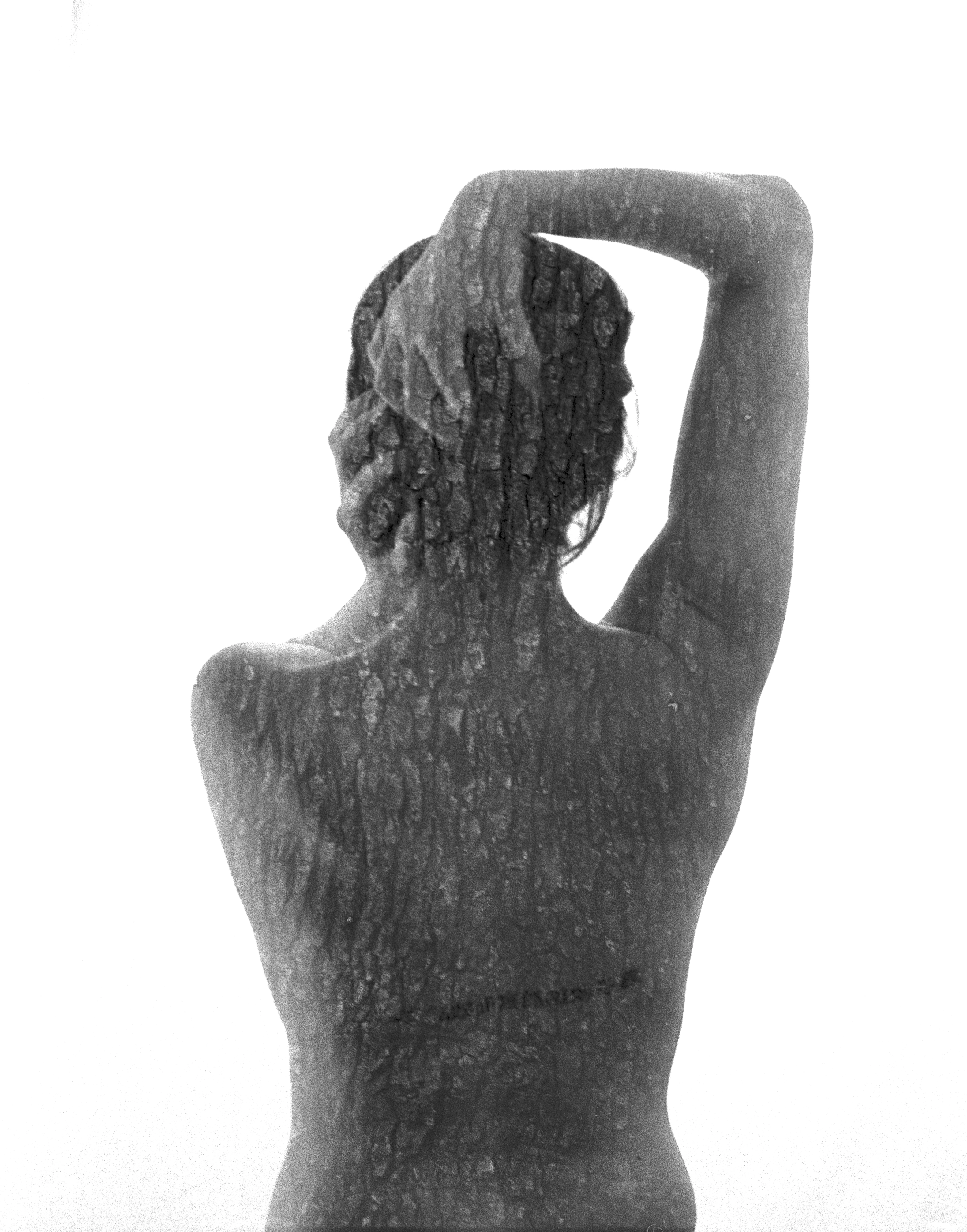 In this next one I really like how the structure and shape of the tree follows the shape of Cailee’s spine as well as how the bark and the hair melt together: